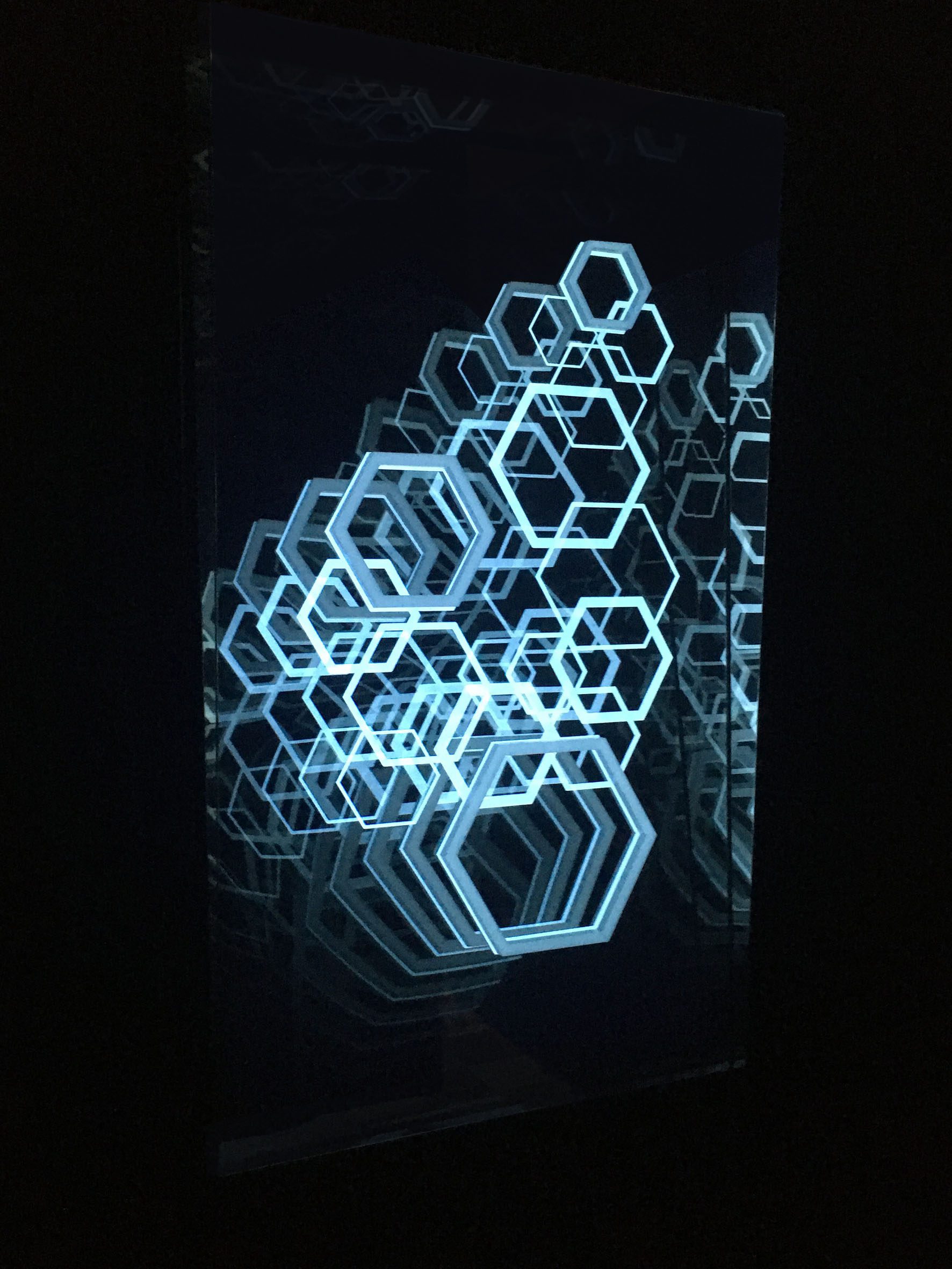 Light – Colour – Space presents both a cross section of Kotter’s work and variants of well-known series such as Colour Code or Interference. His mostly clear and geometric works often shine in uncountable colour combinations. They playfully change between light and darkness, they confuse visual perception, seem to change the environment or to move, or, as in Perfect Angle, seem to disintegrate into fragments.
