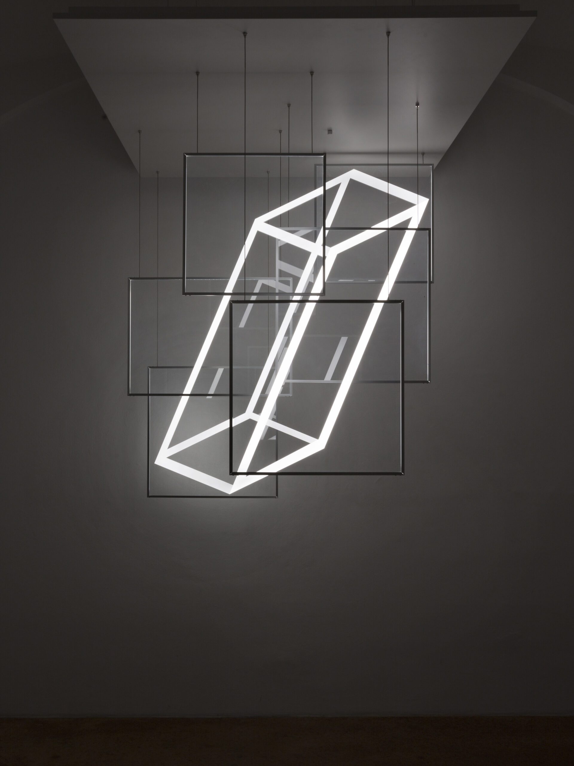 “The work by Berlin-based artist Hans Kotter focuses on the basic physical-artistic elements of light, colour and space. His interest lies in the appearance and effect of these elements under different material conditions. Light holds a special fascination for Kotter. For many years, he has concerned himself with the medium of light, its composition, its physical conditions, its colours, its perception and its cultural history. His work comprises both minimalist individual objects and large-scale installations.